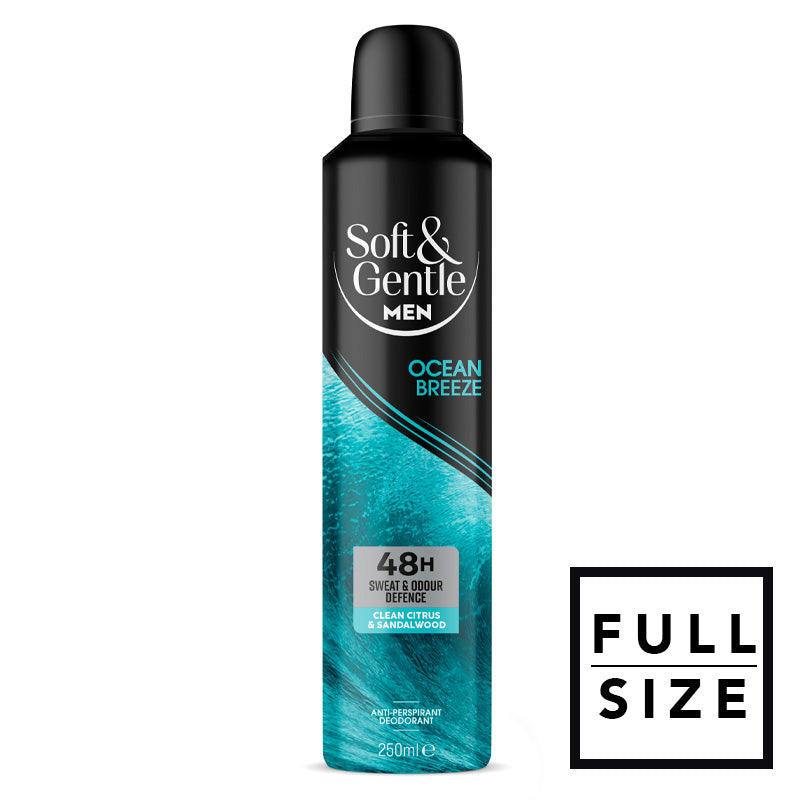 This Soft & Gentle Men antiperspirant deodorant offers 100% aftershave quality scents with 48-hour protection against sweat and odour. The top selling fragrance, Ocean Breeze is fresh and clean with citrus and woody notes.